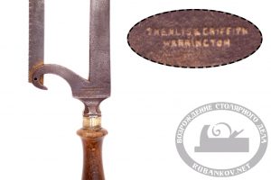На рамке большей из пил нанесены надписи » THEWLIS & GRIFFITH» и «WARRINGTON». Верхняя надпись — название фирмы — производителя, известного с 1813 года. Вторая часть надписи — название города Уоррингтон (Warrington) в графстве Ланкашир (Lancashire), известного своей индустриальной историей.