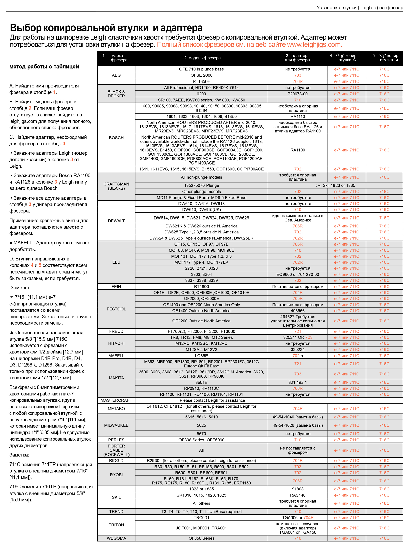 Адаптер для копировальных втулок Leigh # 710 подходит для фрезеров: