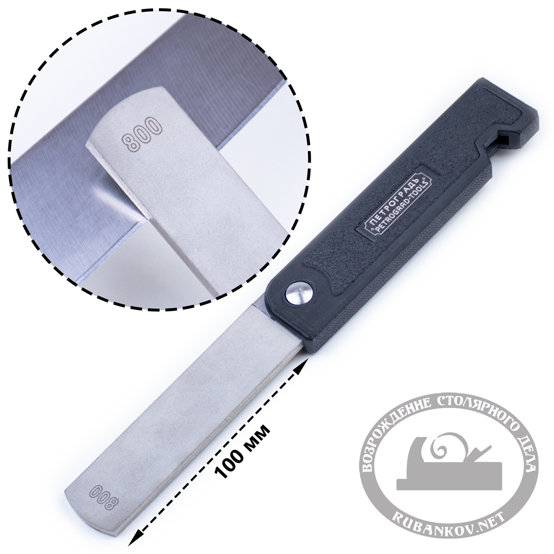 Алмазная точилка, ПЕТРОГРАДЪ, модель 3, двусторонняя, 220/800грит. Точилка предназначена для использования на стройплощадках и в походных условиях. Точилкой можно затачивать ножи, скобели, стамески, тёсла, топоры и другие инструменты. Производство – фабрика Петроградъ (Россия).