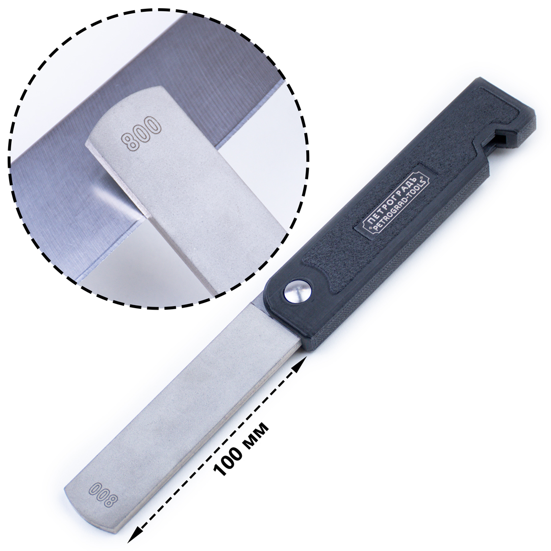 - Абразивный слой на второй стороне (зернистость 800 грит) позволяет убирать затачивать затупившуюся в процессе работы режущую кромку.