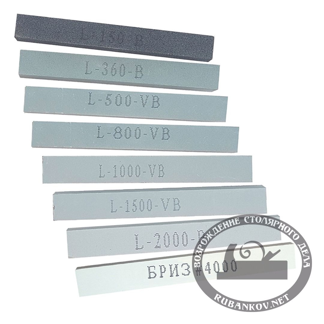 Абразивные водные камни. Зернистость: 150, 360, 500, 1000,1500 и 2000, 4000. Размер 15х15х153мм. Абразивное зерно - карбид кремния. Связка - керамика. Твёрдость I обеспечивает минимальный износ камня при работе. При заточке не перегревается сталь. Не требует использования масла. Перед использованием замочить в воде на 2-10 мин. Используются для заточки и задания скосов.