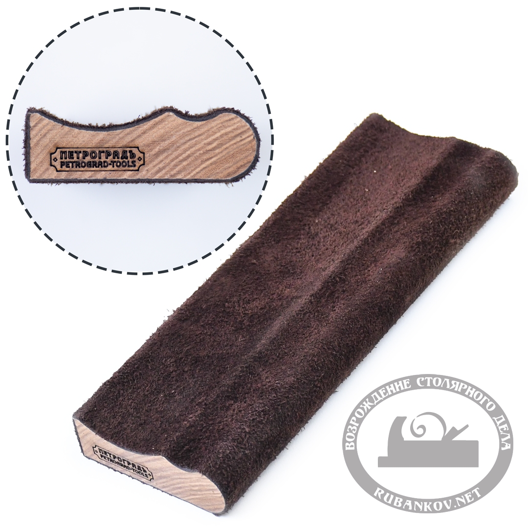 Брусок ПЕТРОГРАДЪ, для правки резчицких стамесок, модель N4, 200мм*70мм. Предназначен для правки широких и узких полукруглых стамесок. Брусок выполнен из дерева и покрыт натуральной кожей. Производство – фабрика Петроградъ (Россия).