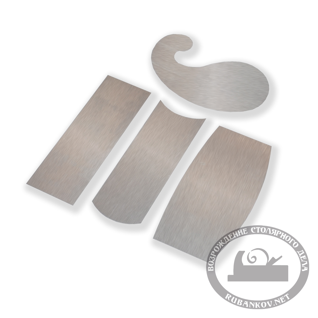 Цикли фигурные , 4 шт. Используются для циклевания и очистки деревянных поверхностей. Изменяя изгиб и угол наклона цикли можно изменять агрессивность съема материала.