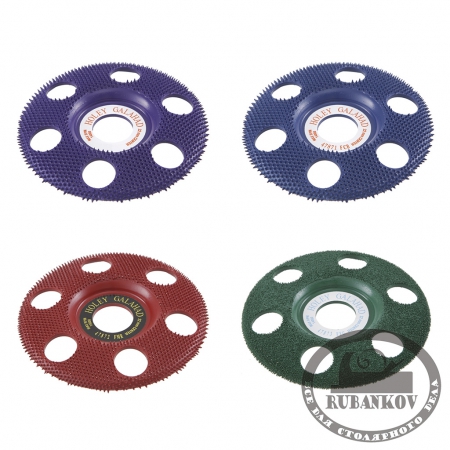 Плоские Диски Holey Galahad идеально подходят для обработки выпуклых поверхностей. Они имеют специальные окна которые во время работы создают иллюзию прозрачности диска. Это позволяет постоянно контролировать форму заготовки - не нужно приподнимать инструмент чтобы увидеть результат обработки. Спектр использования дисков необычайно широк - от производства чаш до изготовления мебели и домов. Абразивный материал - карбид вольфрама. Острые грани карбида вольфрама обеспечивают точное и без сколов формообразование как по пласти, так и по торцам. Максимальная скорость вращения - 14000об/мин. Диски подходят для углошлифовальных машин с рабочим диском 115мм и 125мм. Наружный диаметр диска - 100мм, посадочный диаметр - 22мм. Высота диска - 11мм. Также диски весьма эффективны по работе с древесиной, костью, рогами, стекловолокном, пластмассой, резиной, пенопластом, полиуретаном, и композитными материалами. Различаются разной режущей способностью: