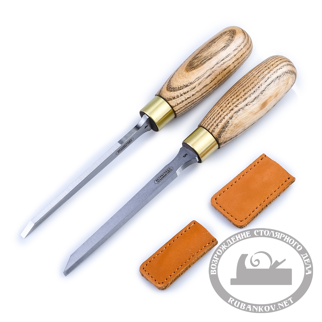 Долота Петроградъ, серии Двина поставляются в индивидуальных коробках, комплектуются индивидуальными кожаными чехлами на режущую кромку. Эти долота также оснащены латунным кольцом и демпфером из кожи, сохраняющим целостность рукояти при ударных работах.