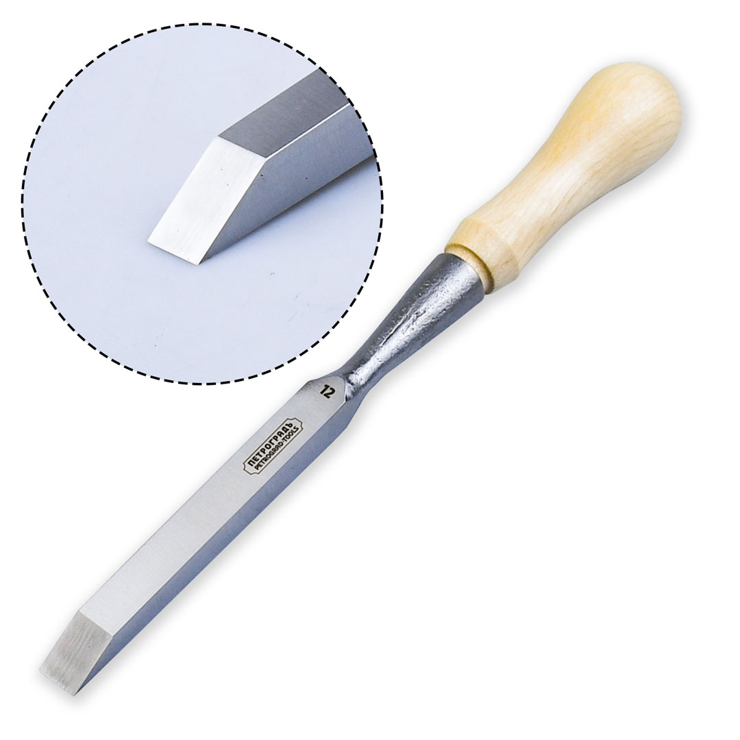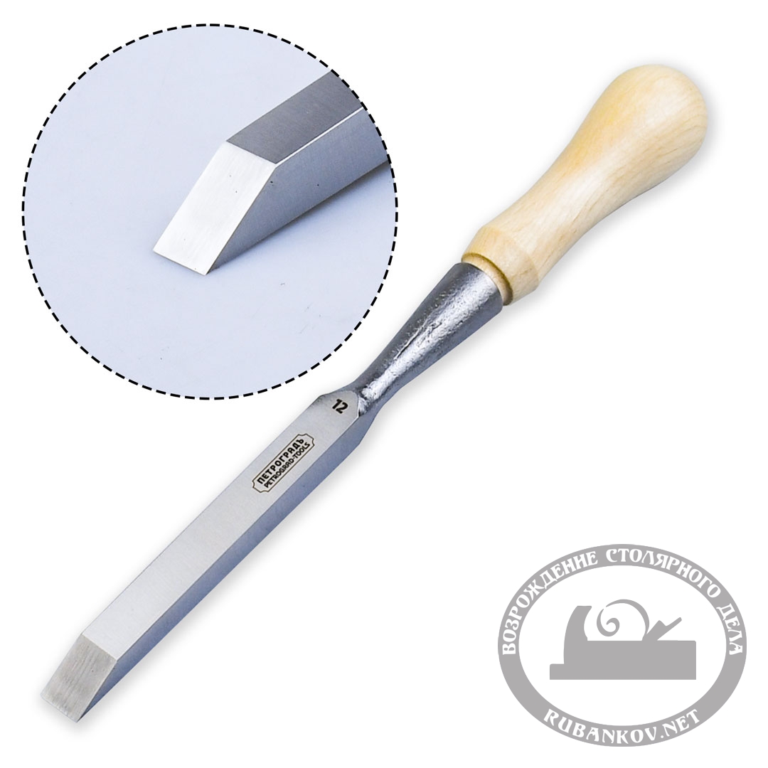 Долота ПЕТРОГРАДЪ, серия Двина-З, со стаканом. Спроектированы, ориентируясь на многолетний опыт мастеров-краснодеревщиков. Долото предназначено для выдалбливания отверстий, гнёзд и пазов с применением киянки. Выковано вручную из инструментальной стали, закалено до 58-61 HRc. Производство фабрика Петроградъ (Россия).