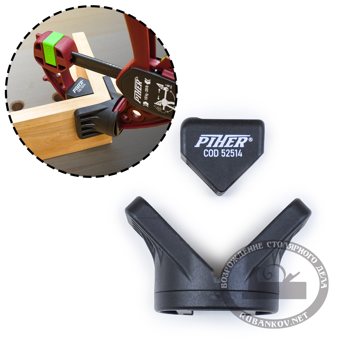 Дополнительная угловая насадка 90 гр. для струбцин Piher, серии Quick. Позволяет эффективно склеивать столярное соединение на ус. Легко устанавливается на струбцины Piher серии Quick. Выполнена из прочного пластика. Производство – Piher (Испания).