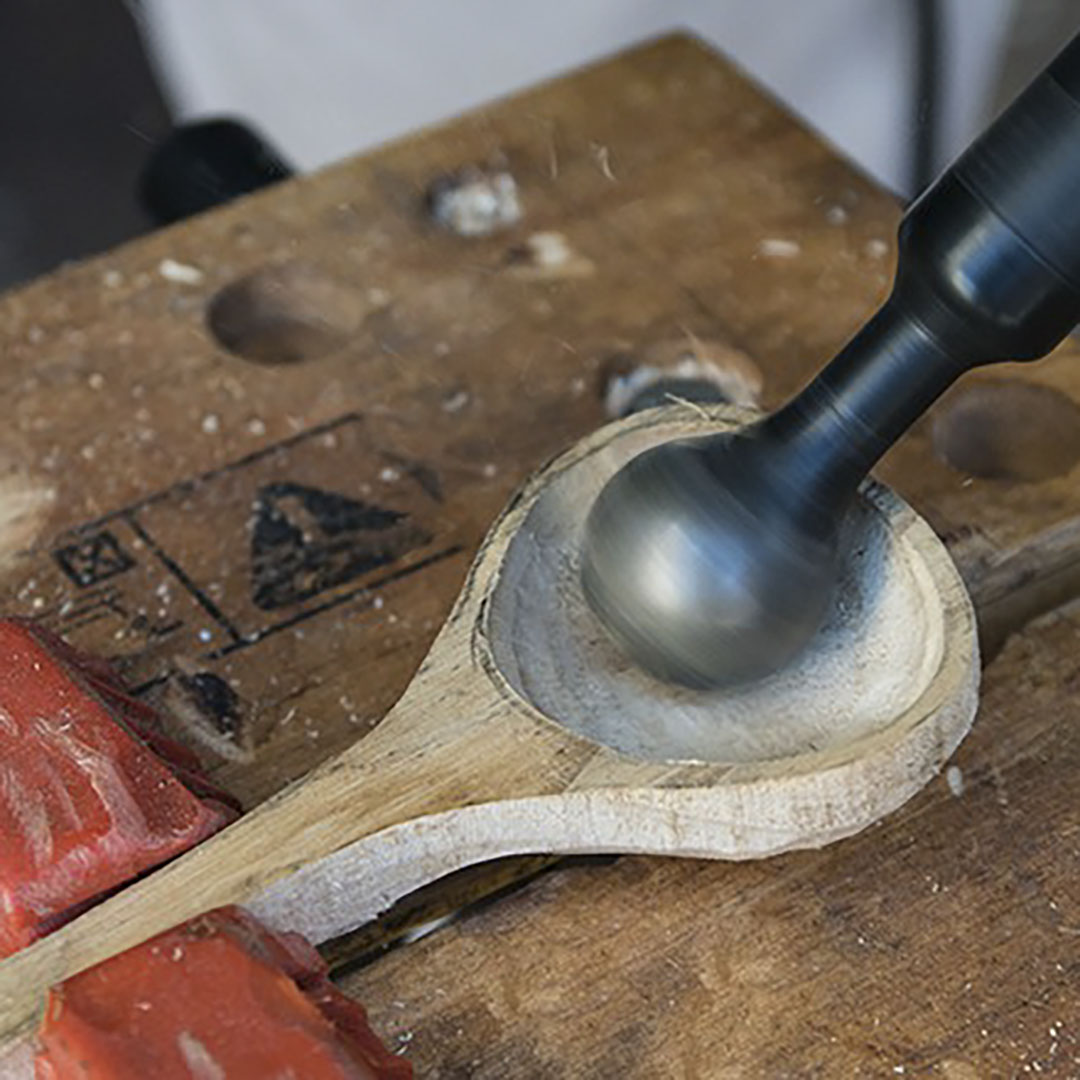 Этот шарообразный резак диаметром 30 мм идеально подходит для резки углублений в деревянных ложках, небольших мисках и полезен для работы с мелкой и средней скульптурой. Ball Gouge с технологией Anti-Grab, которая помогает предотвратить зарывания инструмента. Он легко перемещается по деревянной поверхности, и создает декоративную чешуйчатую текстуру.