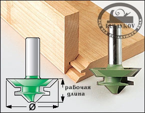 Фреза фасонная для углового и параллельного сращивания. Диаметр фрезы - 38.1мм, рабочая длина - 12.7мм, диаметр хвостовика - 6.35мм. Угол сращивания - 90º. Предназначена для создания аккуратных угловых соединений на "ус", часто применяется при создании коробок и рамок. Рекомендуется использовать с фрезерным столом и вести детали от упора.