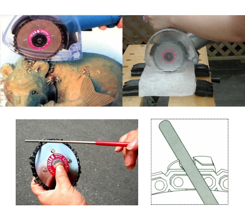 Диск шлифовальный, цепной диаметром 107мм. Устанавливается на УШМ на 100мм. Толщина реза диска 6 мм. Посадочный диаметр 20мм и 15мм (при использовании металлической втулки входящей в комплект). Материал - закаленная сталь. Предназначен для обработки древесины и льда. Идеален для резьбы по дереву, льду, изготовления скульптуры, распилки, подрезке и изготовления углублений. Быстрый и точный рез. Для заточки используется круглый напильник. Максимальная скорость вращения 14500 об/мин. Производство - Star-M (Япония).