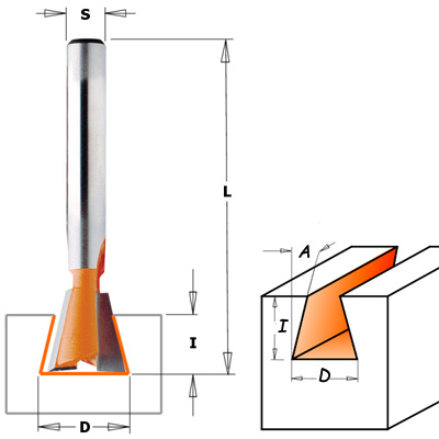 Серия 718 и 918. Аккуратно изготовленное соединение *ласточкин хвост* - классическое соединение, ценится как профессионалами, так и новичками за свою крепость и функциональность. Фрезы *ласточкин хвост* компании CMT соответствуют большинству популярных приспособлений для изготовления соединений, включая Leigh, Keller, JoinTECH и Omnilig, а также для шпонки Хоффман (Hoffman) и, как следствие, станков Хоффман и Омерсан. 2 режущих ножа, выполнены из карбида вольфрама. Снабжены системой защиты от обратного удара (antikick-back) и обводными подшипниками. Поверхность насадных фрез CMT защищена зарегистрированным оранжевым покрытием PTFE противодействующим прилипанию смолы, клея, пыли. Острые как бритва, твердосплавные режущие грани с двух сторон создают характеристики и преимущества определяющие качество продуктов компании CMT. Фрезы диаметром до 9.5 мм выполнены цельнотвердосплавными, а с большим диаметром -  с насадными ножами. Предназначены для правого вращения. Максимальная скорость вращения до 24000 об/мин. Производство CMT (Италия). В таблице представлены технические характеристики фрез *ласточкин хвост*.