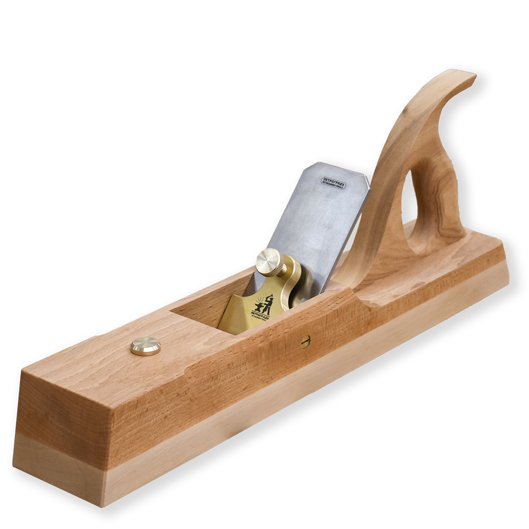 Фуганки ПЕТРОГРАДЪ это традиционные деревянные рубанки, предназначенные для выравнивания длинных заготовок. Колодки выполнены из бука, подошва выполнена из очень устойчивого к стиранию материала массива граба. Рукоять выполнена из ясеня. Ножи рубанков сделаны из стали 9ХС и закалены до 61 единицы по Роквеллу. Прижим ножа выполнен из латуни. Производство фабрика Петроградъ (Россия).