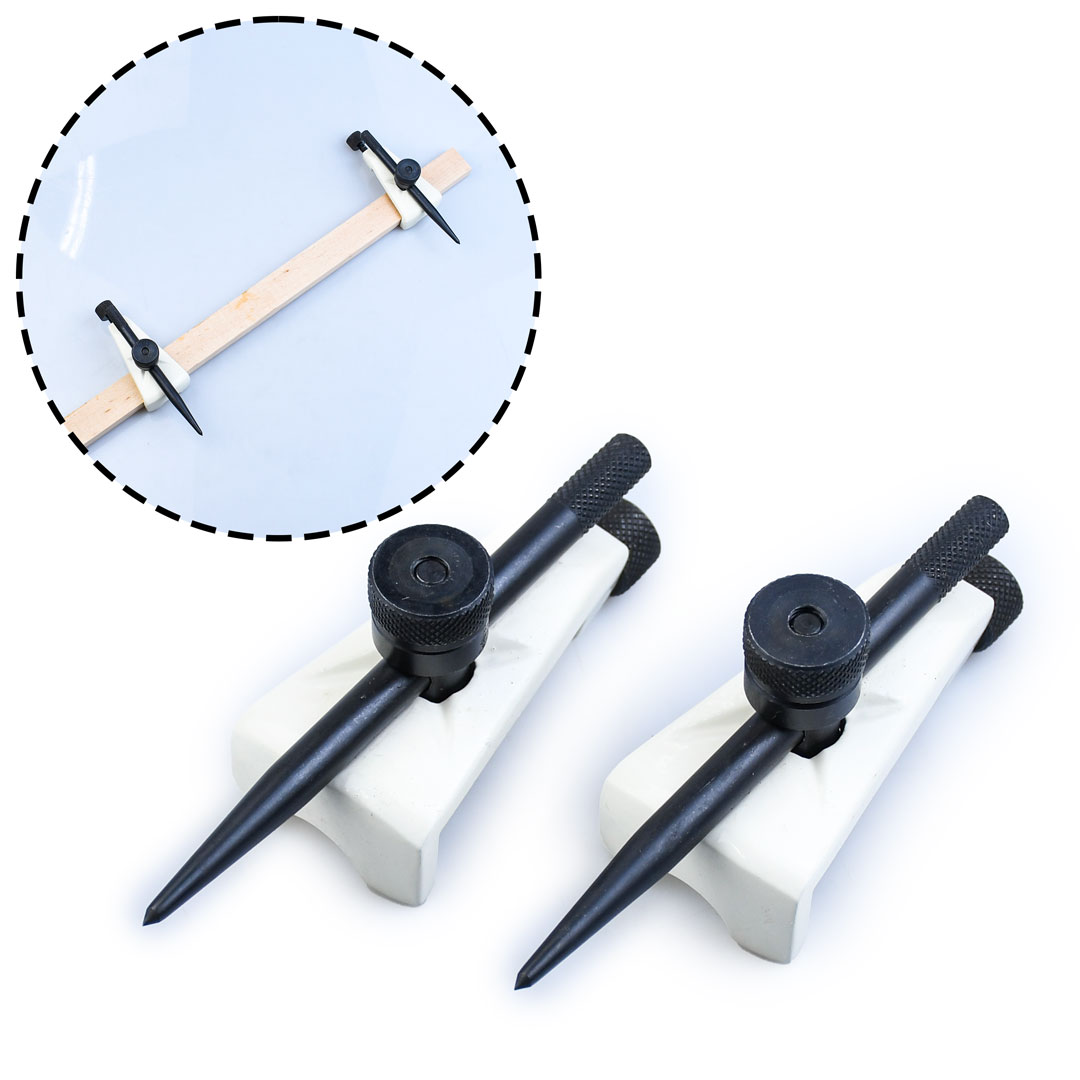Головки для циркуля Beam Trammel, GOLDRATIO, 2 штуки. Предназначен для разметки больших кругов и дуг. Представляет собой 2 зажима с иглами, которые крепятся на брусок неограниченной длины. Сделано в Индии.