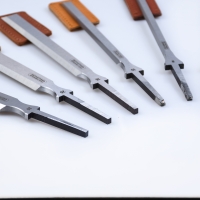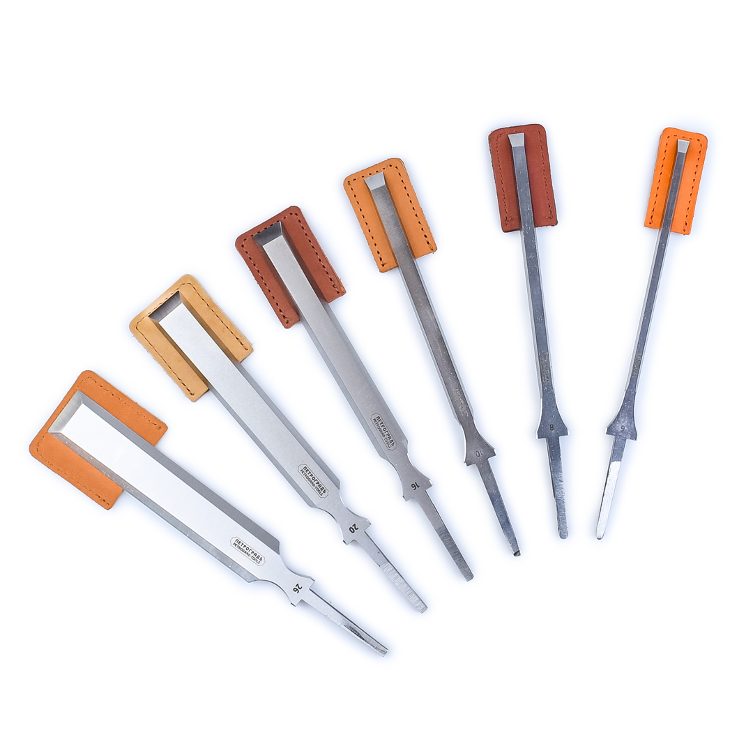 Эти клинки используются для производства стамесок ПЕТРОГРАДЪ, серии Волга. Клинки заточены и готовы к работе. Рукояти любого типа можно купить отдельно. Полотно изготовлено из инструментальной стали 9ХС и закалено до твердости 59-61HRc. Спинка столярной стамески или рабочая сторона выровнена на плоскошлифовальных станках. Каждый клинок комплектуется кожаным чехлом для защиты режущей кромки.
