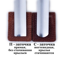 - На клинке указывается: буква "П" - логотип фабрики ПЕТРОГРАДЪ, номер профиля, ширина режущей кромки, длина клинка