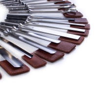 - На каждый клинок одет защитный кожаный колпачок, предохраняющий режущую кромку от повреждений.
