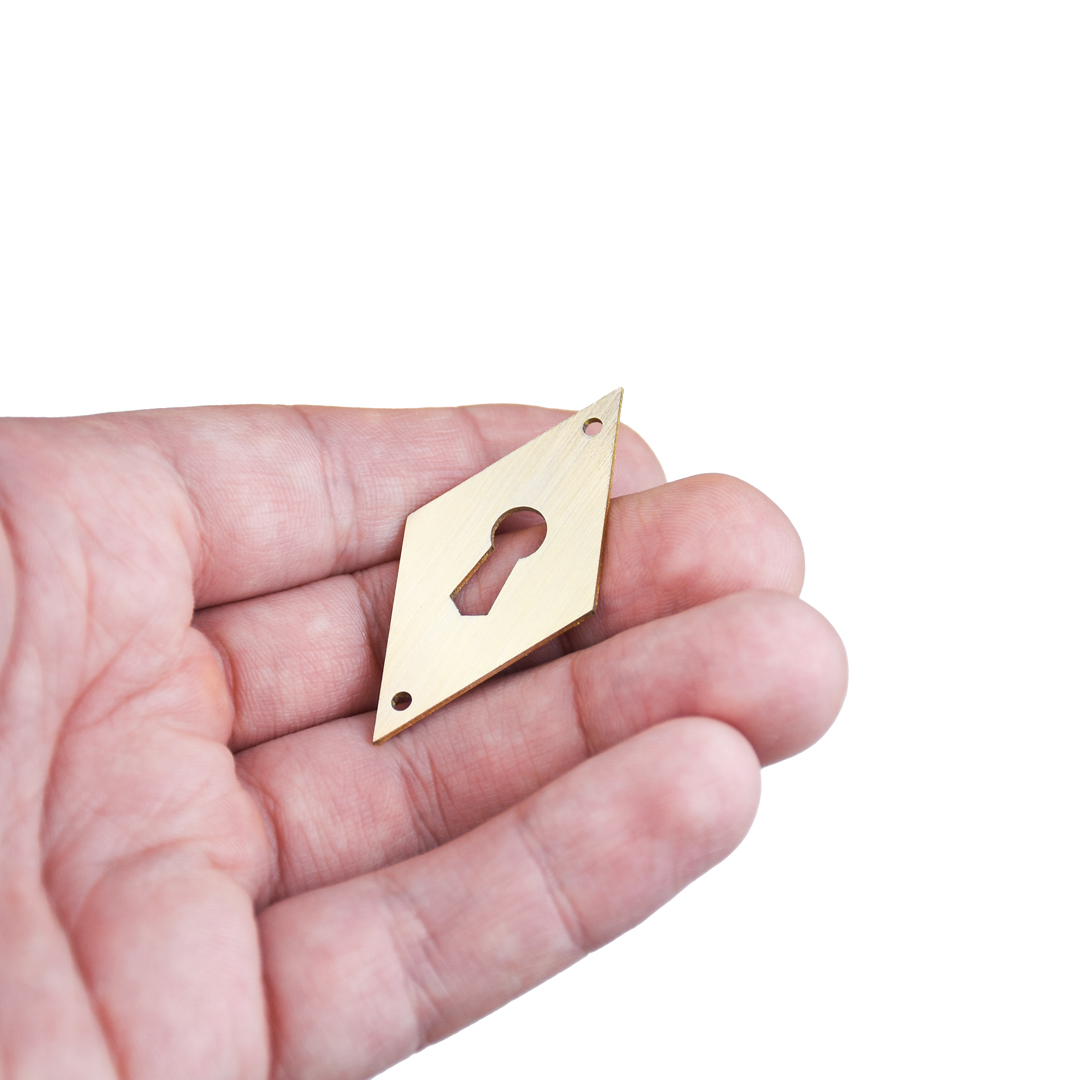 Описание Ключевина "Poor Art", 25х47мм, латунь. Это высококачественная ключевина выполнена в минималистичном стиле. Материал – латунь. Ключевина крепится на 2 винтах или гвоздиках. Межосевое расстояние – 36 мм. Сделано в России.