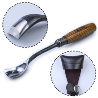 Клюкарзы для изготовления деревянной посуды, ПЕТРОГРАДЪ, серия Вологда. Стамеска-ложкорез предназначена для создания ложек, кукс, а также прекрасно подойдет резьбы по дереву. Стамески клюкарзы используются для выполнения глубокой барельефной резьбы. Стамеска комплектуется защитным кожаным колпачком, предохраняющем режущую кромку. Также удачно подходят для декорирования деревянной поверхности. Производство – Фабрика Петроградъ (Россия)