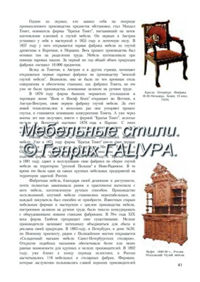 В иллюстрированной книге Генриха Гацура изложена история русского и западноевропейского мебельного искусства, представлен полный обзор мебельных стилей, таблицы с характерными для каждой страны и каждого стиля типами мебели, дан перечень имен лучших русских и европейских мастеров краснодеревщиков, известных фабрикантов мебели, описание фурнитуры и материалов, которые они использовали, и много другой интересной информации, ранее не публиковавшейся как в России, так и за рубежом. Здесь собран редкий материал по истории мебельного искусства из оригинальных источников XVII - XIX и начала XX веков. Книга содержит большое количество графического материала, помогающего разобраться в мебельных стилях, и интересную для российского читателя информацию по истории русского мебельного искусства. Книга может быть полезна не только дизайнерам, архитекторам, декораторам, художникам театра и кино, руководителям и организаторам мебельных производств, работникам мебельных магазинов, учащимся художественных училищ, институтов и школ, но и коллекционерам, реставраторам, музейным сотрудникам, оценщикам и закупщикам антикварных салонов, как справочное пособие при атрибуции предметов, а так же многим другим людям, интересующимся старинными интерьерами, мебелью и историей России или собирающимся обставить свою квартиру ретро-мебелью в классическом стиле. 2008 г. Москва. 208 страниц. Твердый переплет.