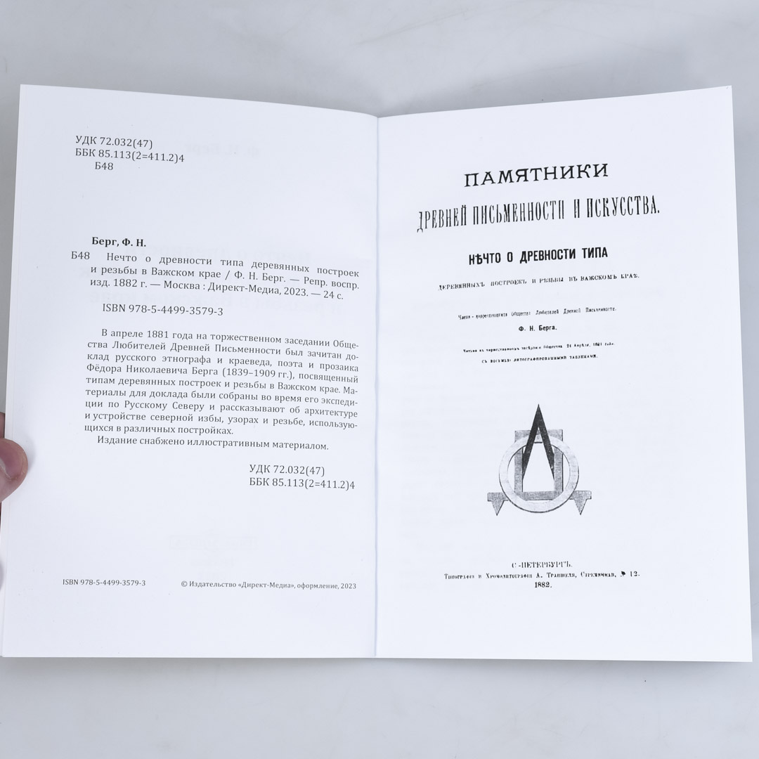 Книга 'Нечто о древности типа деревянных построек и резьбы в Важском крае', Берг Ф.Н.М00022049 390 pСкоро Уведомить