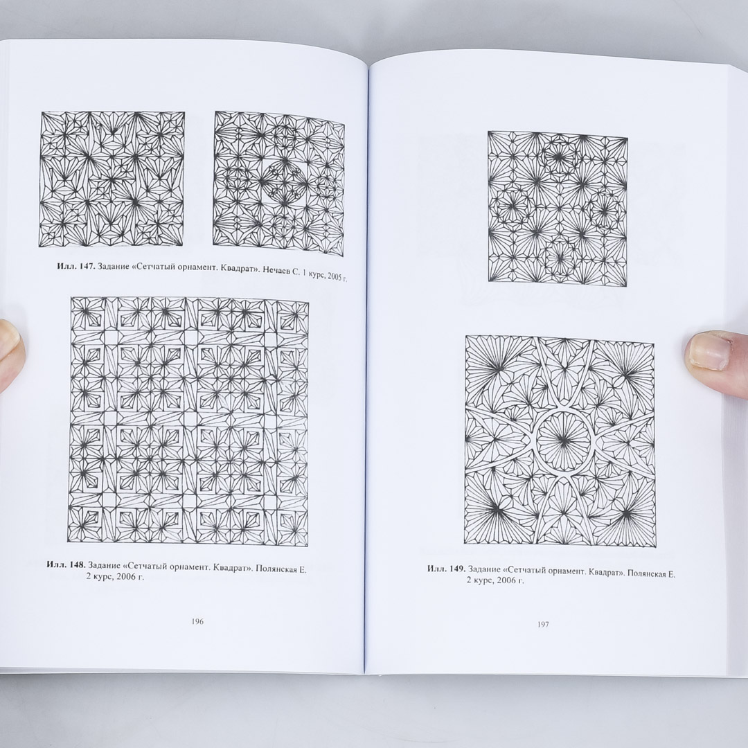 Книга "Основы орнаментальной композиции в геометрической трёхгранно-выемчатой резьбе",Смолеевский С. Пособие содержит описание вводного блока учебно-творческих заданий по основам композиции геометрической трёхгранно-выемчатой резьбы по дереву, а также рекомендации по их выполнению. В нём представлены базовые понятия об орнаментике, элементах и мотивах резьбы, используемых в учебно-творческой работе. Даны основные требования по выполнению заданий в соответствии с принятым учебным планом, предложен перечень необходимых инструментов и материалов, применяемых в процессе выполнения этих заданий. Данное методическое пособие направлено на развитие композиционно-творческого мышления средствами декоративной композиции в области художественной резьбы по дереву. Предлагаемые учебно-творческие задания и их последовательность разработаны и основаны на многолетнем опыте практической работы со студентами ХГФ. Эффективность обучения по данной методике подтверждена практикой. Она позволяет студентам в относительно короткий промежуток времени освоить основные базовые принципы выполнения различных орнаментальных композиций, применяющихся в геометрической резьбе по дереву. Адресовано студентам художественно-графического факультета, обучающимся по специальности «художник декоративно-прикладного искусства», а также преподавателям, руководителям кружков, учащимся средних учебных заведений, любителям художественной резьбы по дереву.
