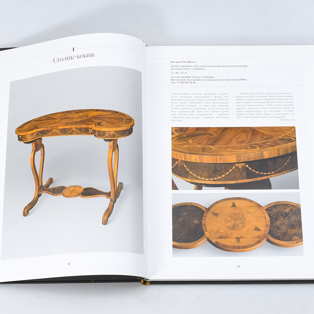 Книга "Русская Наборная Мебель XVIII века", Киктев С. М. Наборная мебель, украшенная сложными сюжетными и орнаментальными картинами из разных пород дерева, стала популярна в России в 1750-1760-е годы, но мода на нее продержалась практически до конца 19 века. В каталоге представлены предметы русской деревянной мебели XVIII века из собраний московских музеев и частных коллекций. Каждый предмет сопровождается иллюстрациями и описанием-аннотацией. Издание предназначено как для специалистов-искусствоведов, так и для всех любителей отечественной и европейской культуры XVIII столетия.