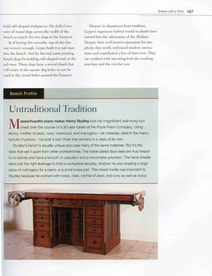 Вопрос совершенного столярного верстака остается открытым из-за большого количество всевозможных  вариантов конструкци, дизайна и различных дополнительных опций. В этой шедро иллюстрированной цветной книге Лон Шлеининг проводит для вас персональную экскурсию по мастерским оснащенным верстаками самых разнообразных типов с практическими советами по дизайну и конструкции от известных столяров (таких как Гарретт Хэк, Дэвид Чарлесуорт, Сэм Малуф и др.) , которые используют их в своей работе. Книга в твердом переплете, 202 страницы. Язык английский. Издательство The Taunton Press. 2004 г.
