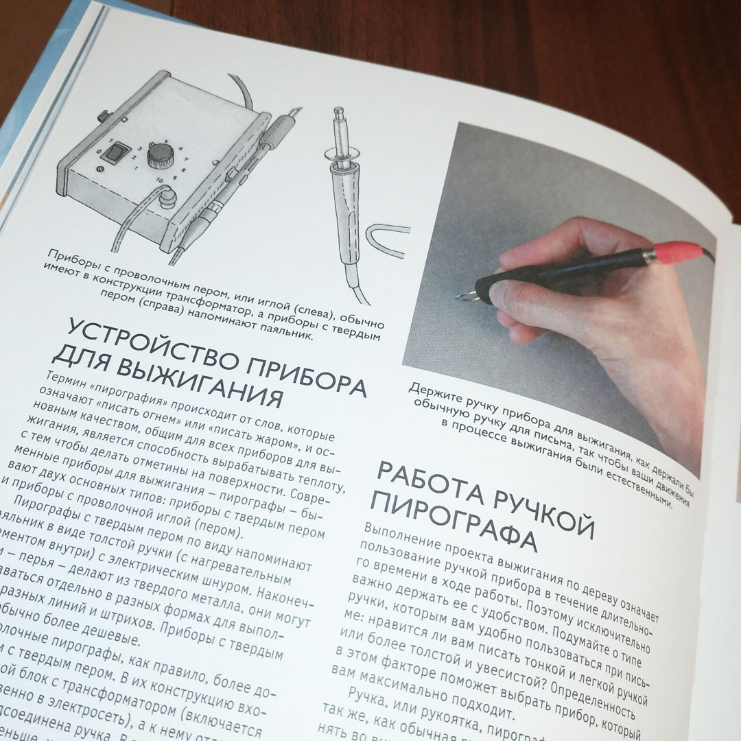 Книга "Учись выжигать по дереву. Пошаговое руководство для начинающих", Истон Саймон. В этом доступном, ясном и практичном введении в искусство выжигания по дереву (пирографию), художник-пирограф Саймон Истон знакомит читателя с основами пирографии — от приобретения инструментов и материалов до регулировок оборудования и техники безопасности. Подробно и наглядно показывает, как освоить выжигательный прибор и все базовые приемы работы — от простых штрихов до текстурирования, написания букв, выполнения теней и отделки.