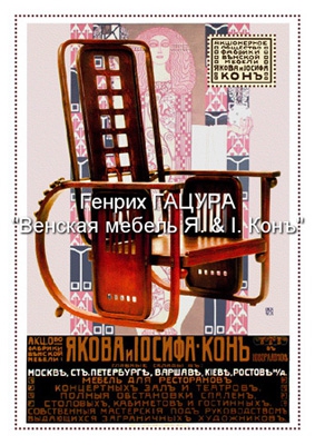 Более 1600 иллюстраций и предметов мебели. С самого начала девизом акционерного общества Якова и Иосифа Конъ" было латинское изречение "Semper Sursum" - "Быть на шаг впереди", и они полностью оправдывали свой девиз. К началу 20 века, в 1903 году, в юбилейном издании о самых достойных фирмах Австро-Венгенской империи огромная статья была посвящена фирме "Якова и Иосифа Конъ", и лишь в ней, мельком, было упомянуто о Тонете. Это говорит о том, насколько ценили эту фирму их современники. Да, несомненно, Михаил Тонет и его фирма "Братья Тонет" оставили большой след в Истории мебельного искусства, но фирма "Я.& I. Конъ", хоть и позже пришла в производство гнутой венской мебели, всегда старалась придерживаться своего дивиза - "Быть на шаг впереди". Вряд ли мы без этого имели бы многомиллионные тиражи изделий венской гнутой мебели. На первой же фабрике Конов процесс гнутья бука занимал несколько минут, а не два часа, как у Тонета. Фирма "Я. & I. Конъ" одна из первых приняла стиль модерн, поняла необходимость участия в разработке новых изделий дизайнеров, и привлекла к работе известнейших молодых архитекторов венского сецессиона Иозефа Хоффмана, Отто Вагнера, Адольфа Лооса, Коло Мозера, Густава Зигеля и др.