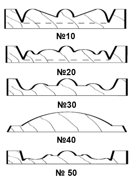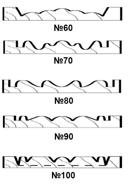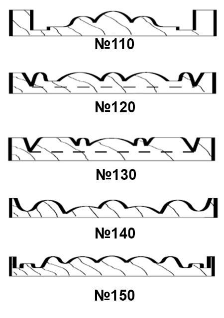 т 43мм до 100мм.Профиля 10, 20, 100, 120, 130 могут быть использованы для создания накладных элементов. Материал ножей -