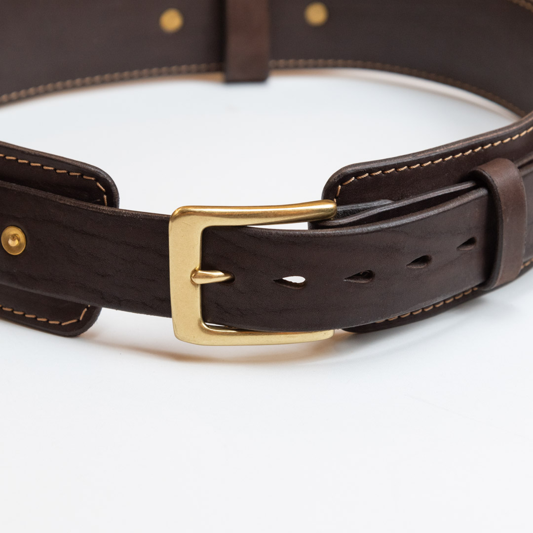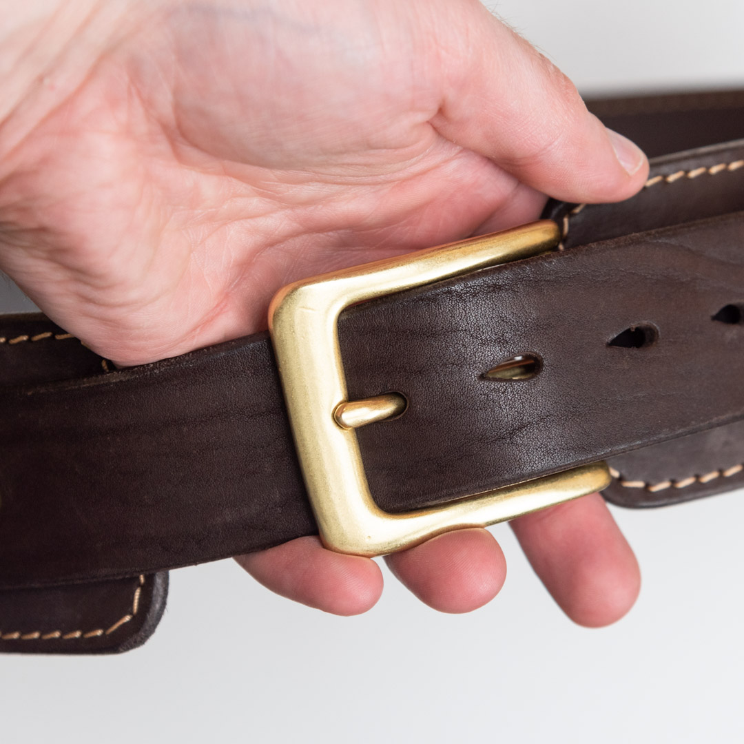 Винты и пряжка ремня изготовлены из латуни, ярко подчеркивают и украшают ремень.