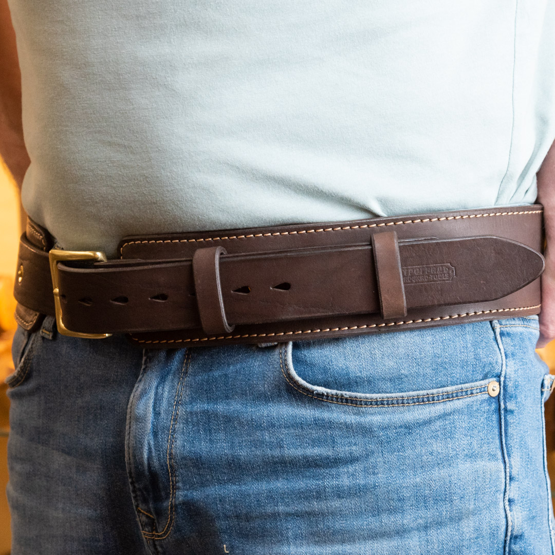 Кожаный ремень для разгрузки и подвеса инструментов, изготавливается из натуральной кожи черного цвета, пряжка выполнена из цельного куска латуни. Ремень аккуратно прошит по периметру, что придает ему контрастные очертания и выигрышный броский вид. Кожаный ремень для разгрузочного пояса представляет из себя две полосы кожи разной ширины скрепленные сатунными заклепками и прошитый по периметру. Задняя часть ремня выполнена из более широкой ленты кожи для лучшего распределеня нагрузки. Может быть использован совместно с аксессуарами для плотников от фабрики Петроградъ или любой другой марки. Производство фабрика Петроградъ (Россия)