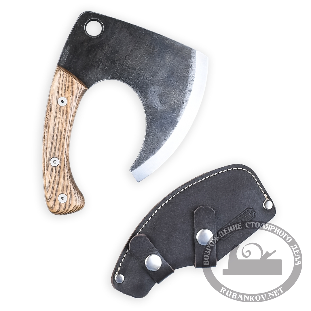 Модель Елец поставляется с удобным кожаным чехлом для защиты режущей кромки топора при транспортировке. Кулачный топор от фабрики Петроградъ станет вам незаменимым помощником в лесу, на рыбалке, охоте, огороде и даже на кухне.
