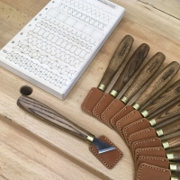 - Специальные геометрические прописи – дощечки из липы с нанесённым орнаментом для резьбы, разработанные для начинающих резчиков