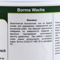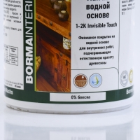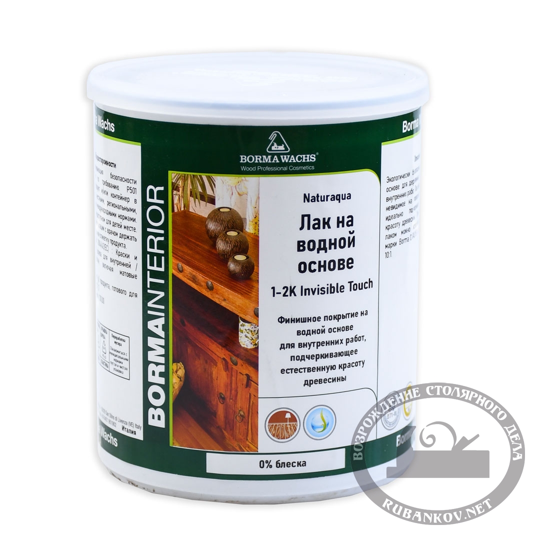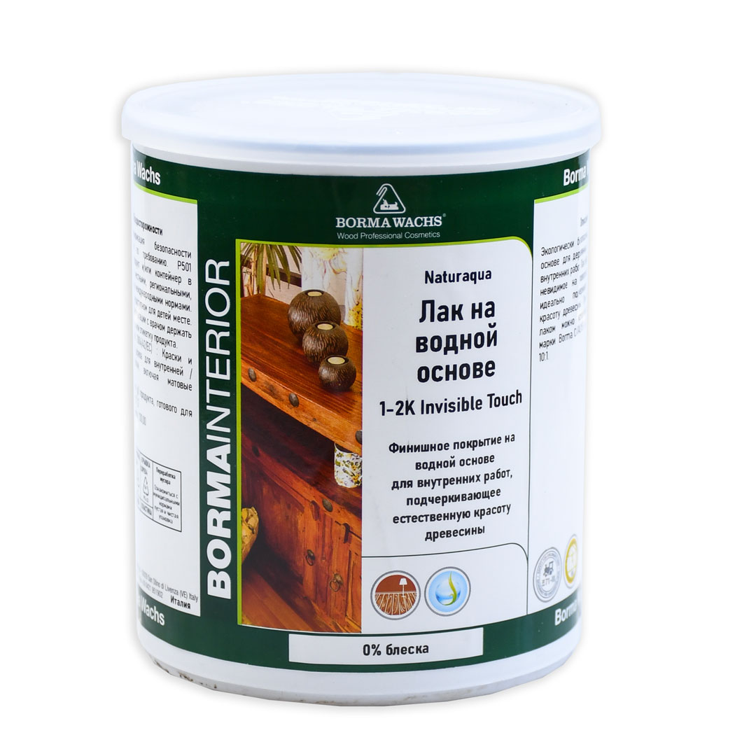 Лак на водной основе для внутенних работ 0% (1 л). Экологичный лак на водной основе для защиты деревянных поверхностей. INVISIBLE TOUCH позволяет получить покрытие "натуральный эффект", по внешнему виду сравнимое с необработанной древесиной. Идеально подходит для отделки столешниц, дверей и любой мебели. Не изменяет естественный цвет древесины. Производство – Borma (Италия).
