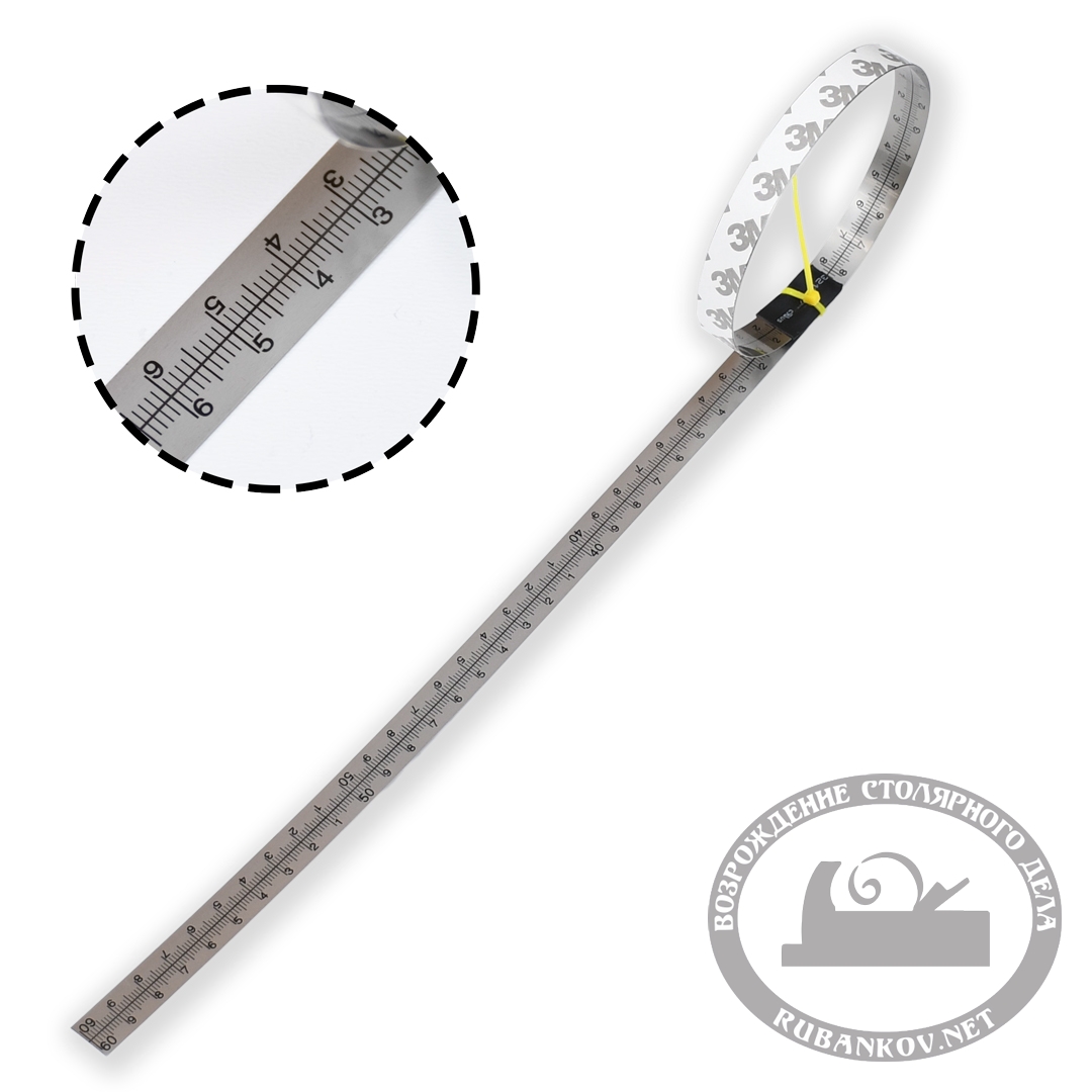 Стальная измерительная лента с клейкой основой подойдет для установки на поверхность станка для выставления линеек, на стол для измерения габаритов деталей и упаковки, на самодельную штангу или шаблон для регулировки вылета инструмента. Может быть установлена на любую плоскость: вертикально, горизонтально, диагонально.