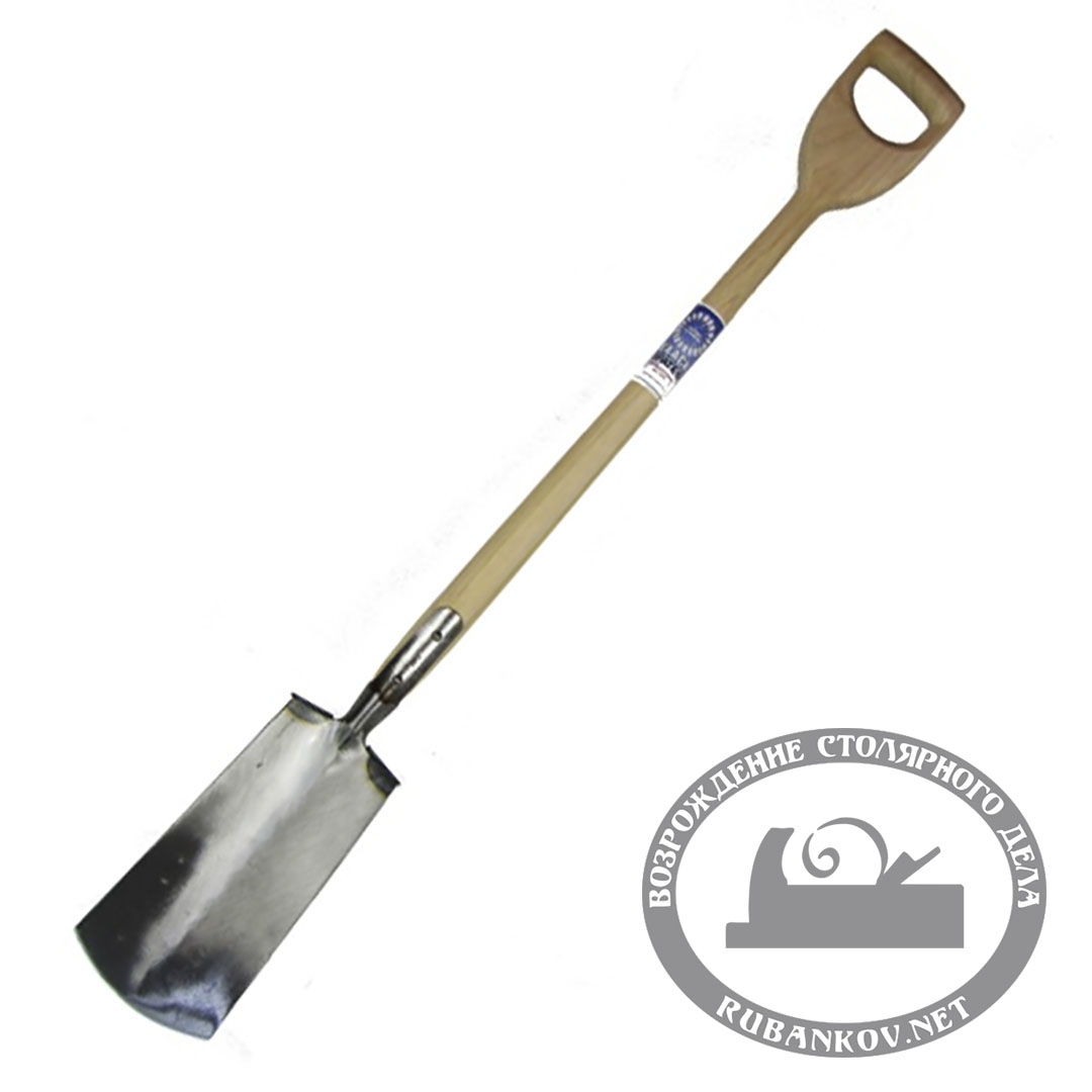Вручную откованная лопата с длинным лезвием для выкапывания дренажных канав, торфа и глубокого рыхления почвы.