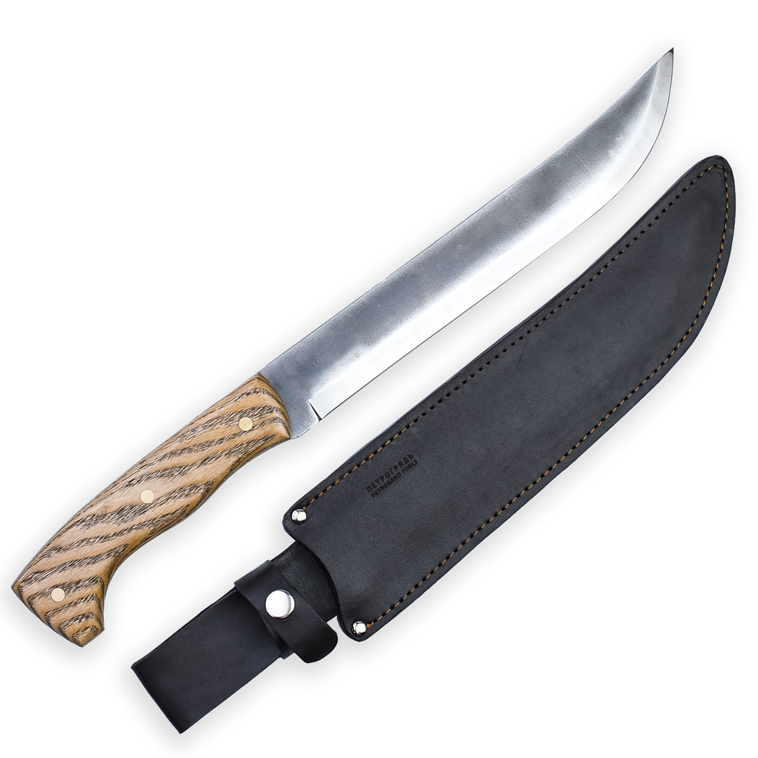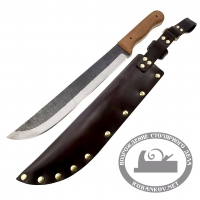 Мачете ПЕТРОГРАДЪ, 285мм. Используется в качестве компактного и легкого топора сая или чигата. Для обрезки мелкой поросли, рубки молодых тонких деревьев и обрезки веток. Может также использоваться как большой нож из-за формы лезвия. Стильный чехол, который вы можете прикрепить на ремень. Мачете с двусторонней заточкой используется для рубки древесины. По своей сути как топор для рубки средних веток и небольших деревьев. Производство фабрика Петроградъ (Россия).