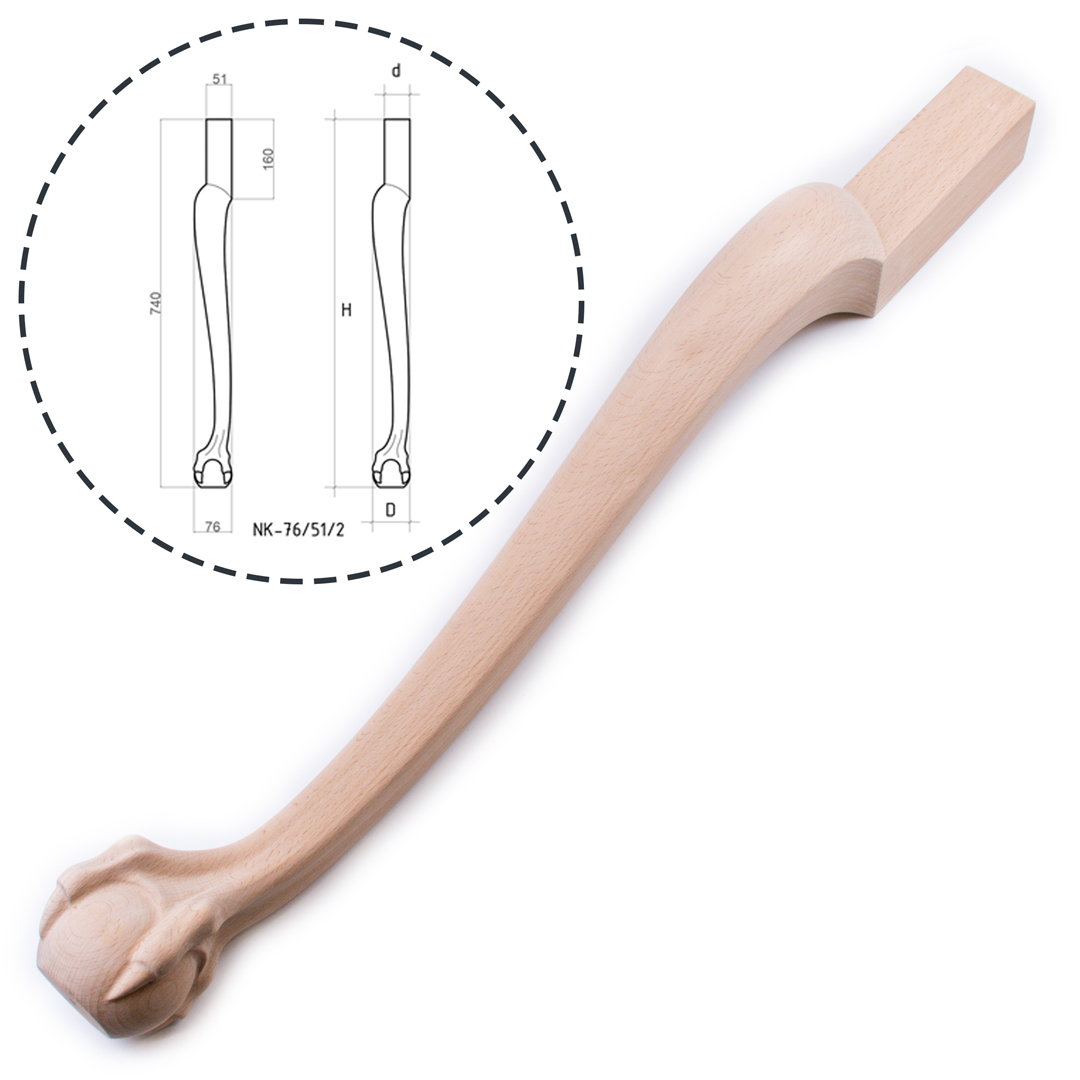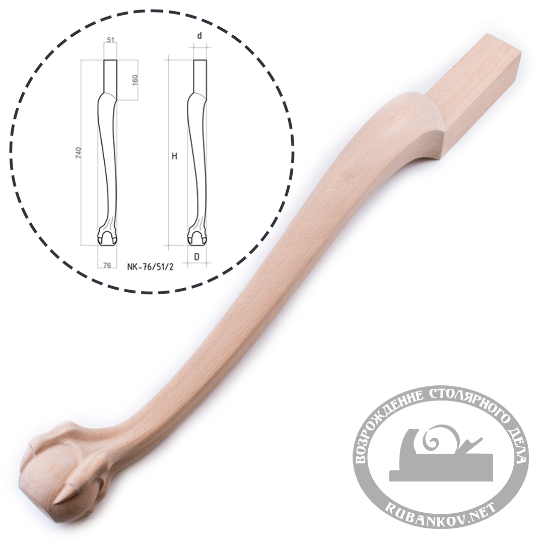 Мебельная опора NK- 76.2, H740, D76, d51 мм, Бук. Реплика Английской ножки кабриоль XVIII века в стиле "Томаса Чиппендейла", также популярной в американской мебели колониального периода. Ножки выполнены без переклейки из цельного массива бука с завершением "Птичья лапа на шаре". Опоры имеют начальную шлифовку и требуют финишной подготовки поверхности перед покрытием. Сделано в России.