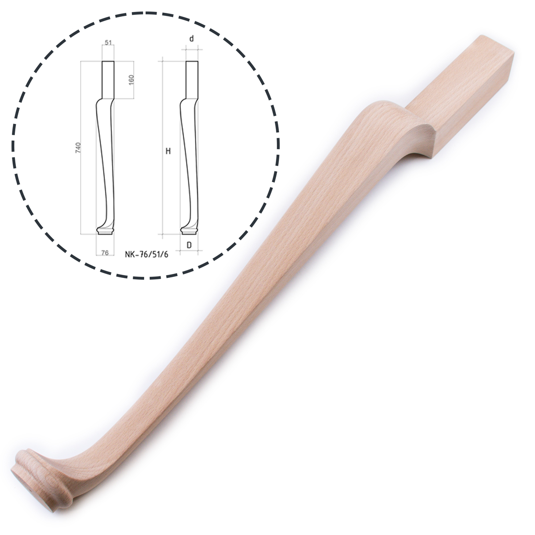 Ножка кабриоль может быть использована для создания мебели, стилизованной под изделия XVIII века. Ключевой особенностью этой ножки кабриоль является исполнение без переклейки. Именно такое исполнение позволит вам покрыть ножку прозрачным маслом, тогда как у переклеенных ножек места склейки под маслом с высокой долей вероятности станут видны.