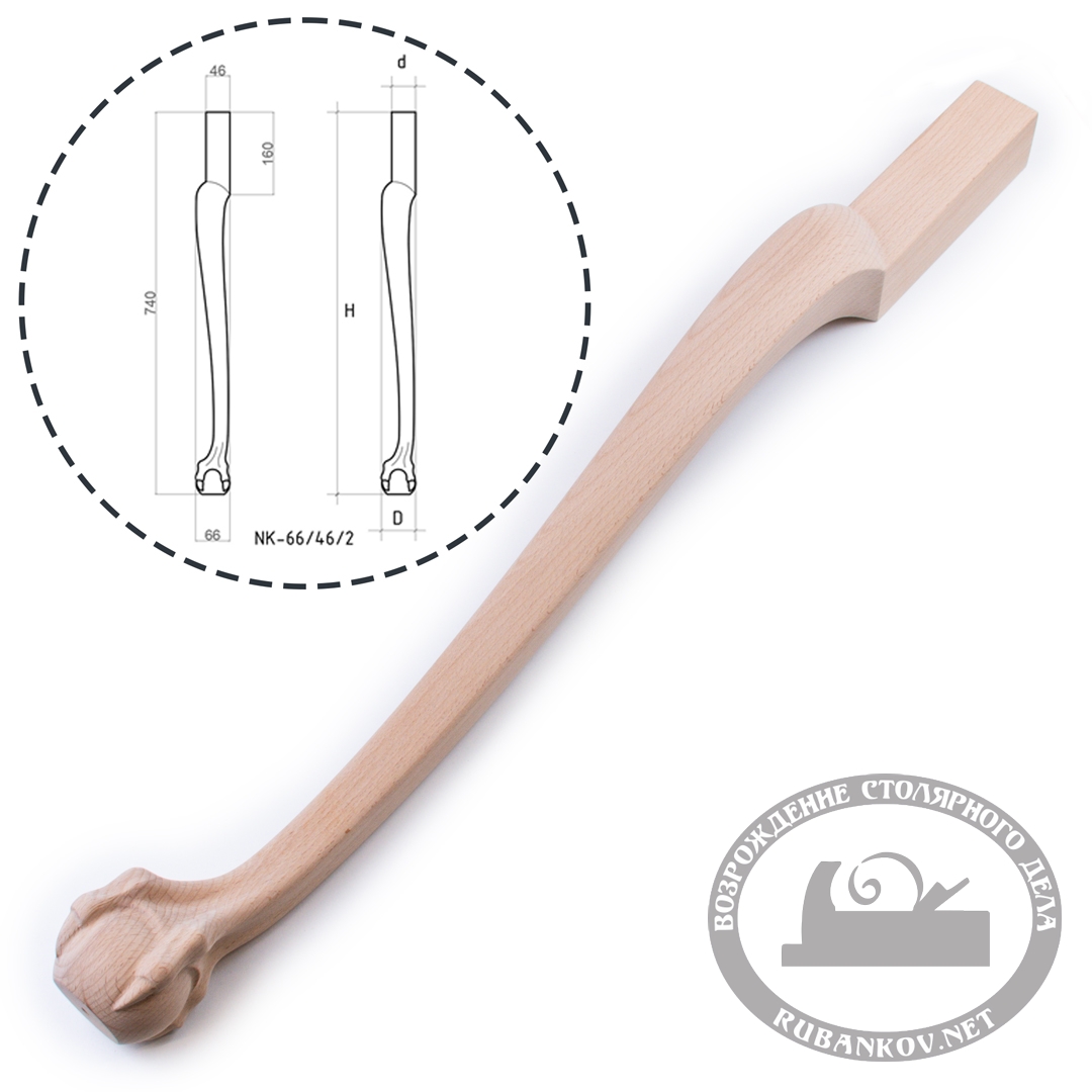 Мебельная опора NT- 66.2, H740, D66, d46 мм, Бук. Реплика Английской ножки кабриоль XVIII века в стиле "Томаса Чиппендейла", также популярной в американской мебели колониального периода. Ножки выполнены без переклейки из цельного массива бука с завершением "Птичья лапа на шаре". Опоры имеют начальную шлифовку и требуют финишной подготовки поверхности перед покрытием. Сделано в России.