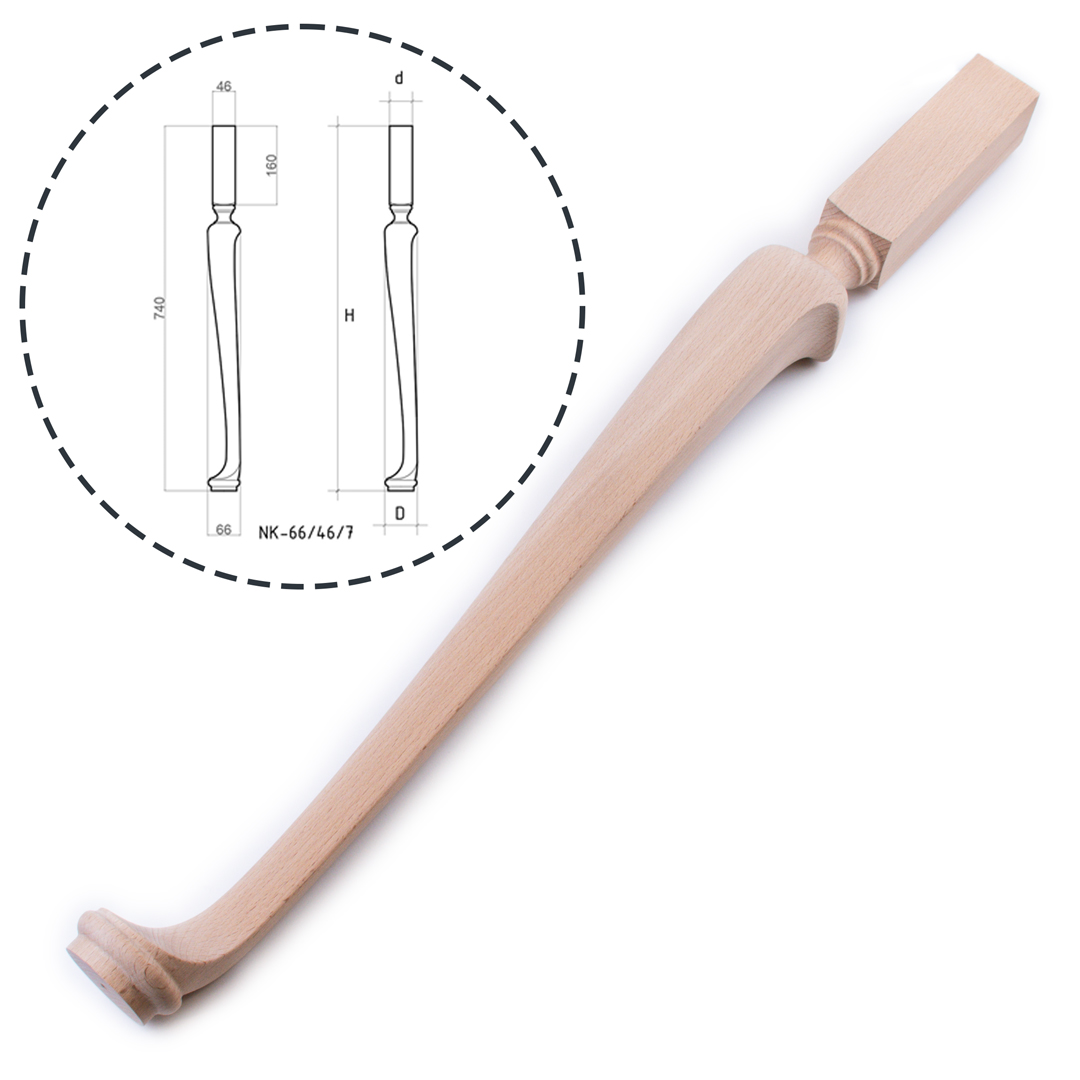 Мебельная опора NT- 66.7, H740, D66, d46 мм, Бук. Реплика Английской ножки кабриоль XVIII века эпохи "Королевы Анны", также популярной в американской мебели колониального периода. Ножки выполнены без переклейки из цельного массива бука с завершением "Подошва". Опоры имеют начальную шлифовку и требуют финишной подготовки поверхности перед покрытием. Сделано в России.