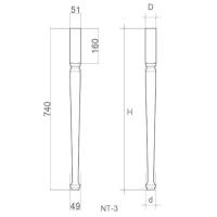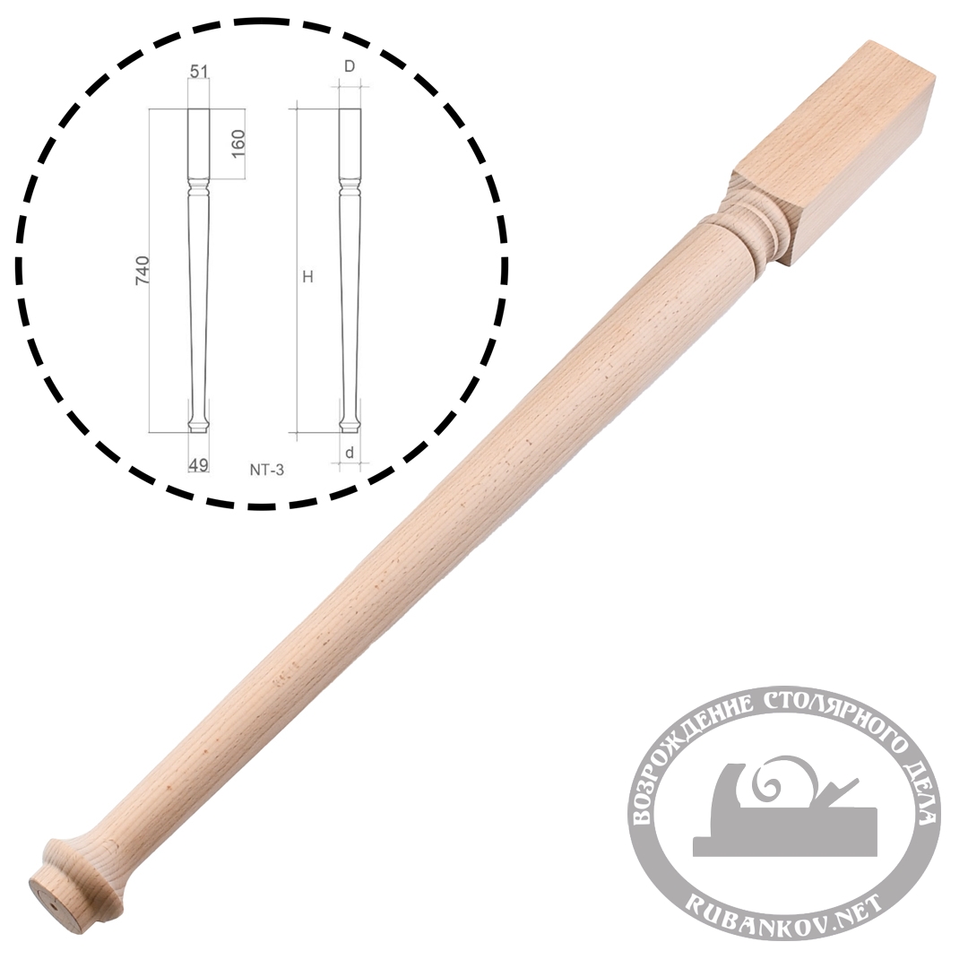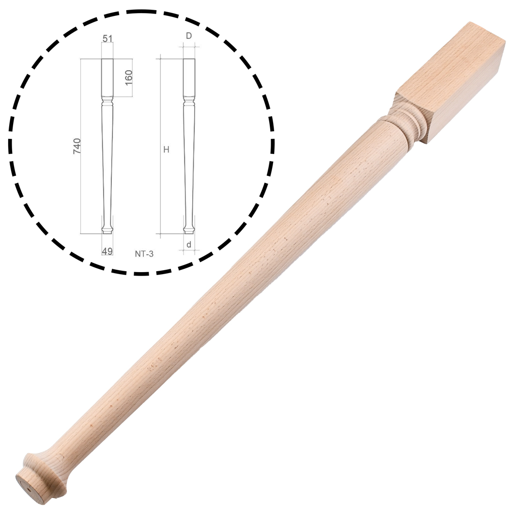 Мебельная опора NT-3, H740, D51, d49 мм, Бук. Это выполненная в традиционном дизайне опора для изготовления мебели из массива. Материал опоры – массив бука. Опора имеет гладкую отшлифованную поверхность. Сделано в России.