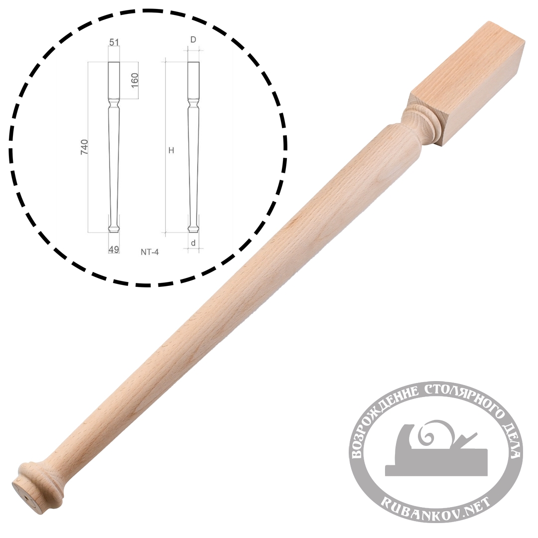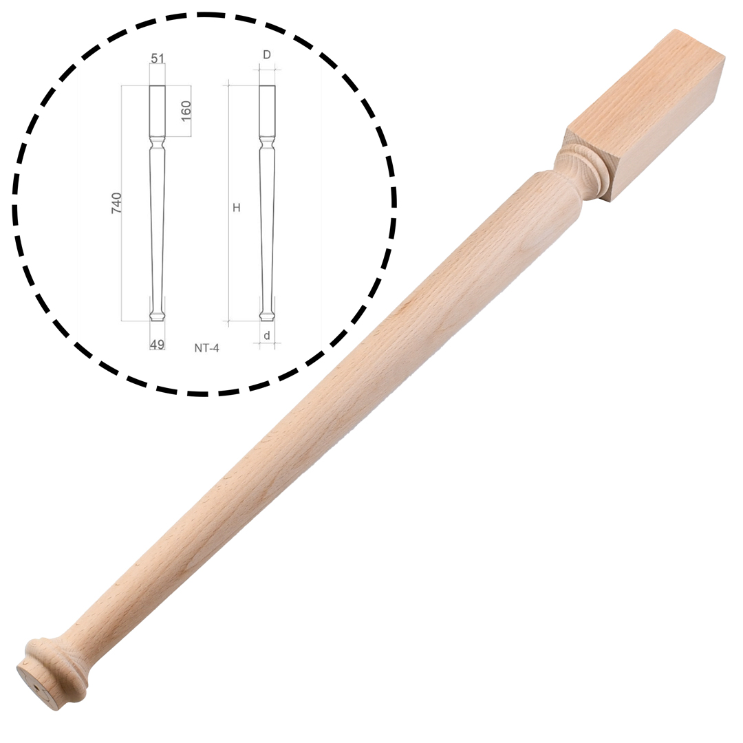 Мебельная опора NT-4, H740, D51, d49 мм, Бук. Это выполненная в традиционном дизайне опора для изготовления мебели из массива. Материал опоры – массив бука. Опора имеет гладкую отшлифованную поверхность. Сделано в России.