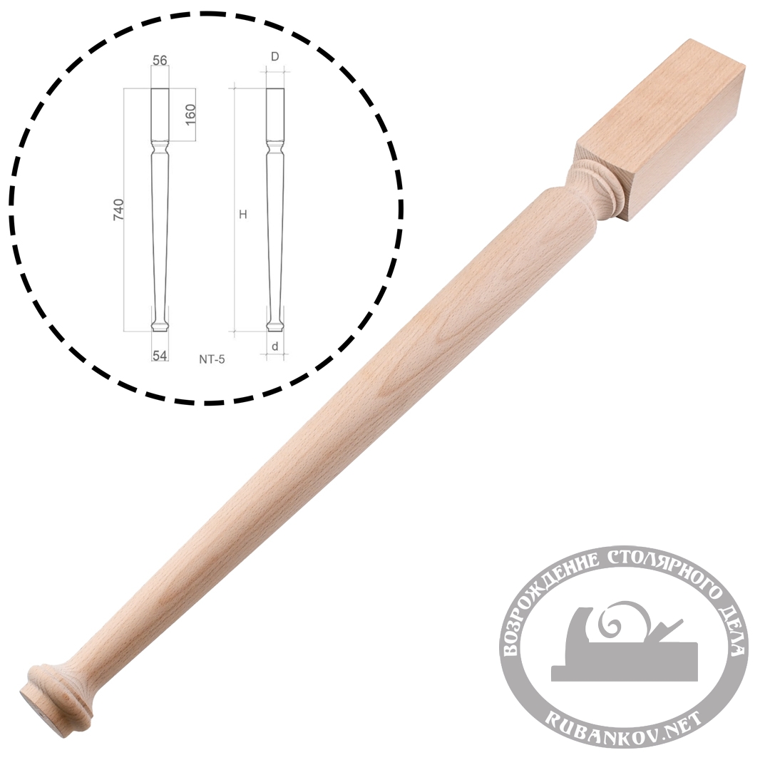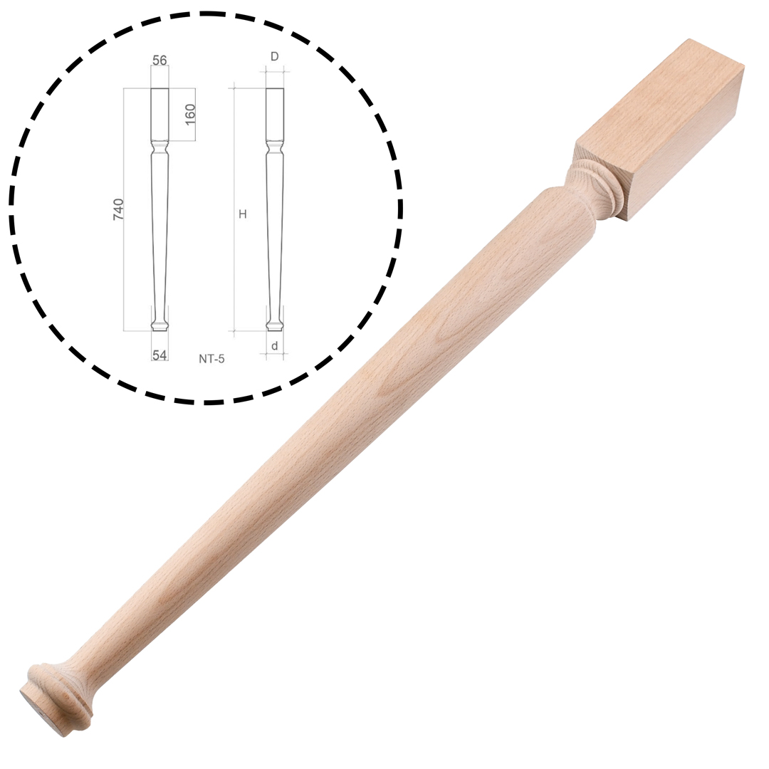 Мебельная опора NT-5, H740, D56, d54 мм, Бук. Это выполненная в традиционном дизайне опора для изготовления мебели из массива. Материал опоры – массив бука. Опора имеет гладкую отшлифованную поверхность. Сделано в России.
