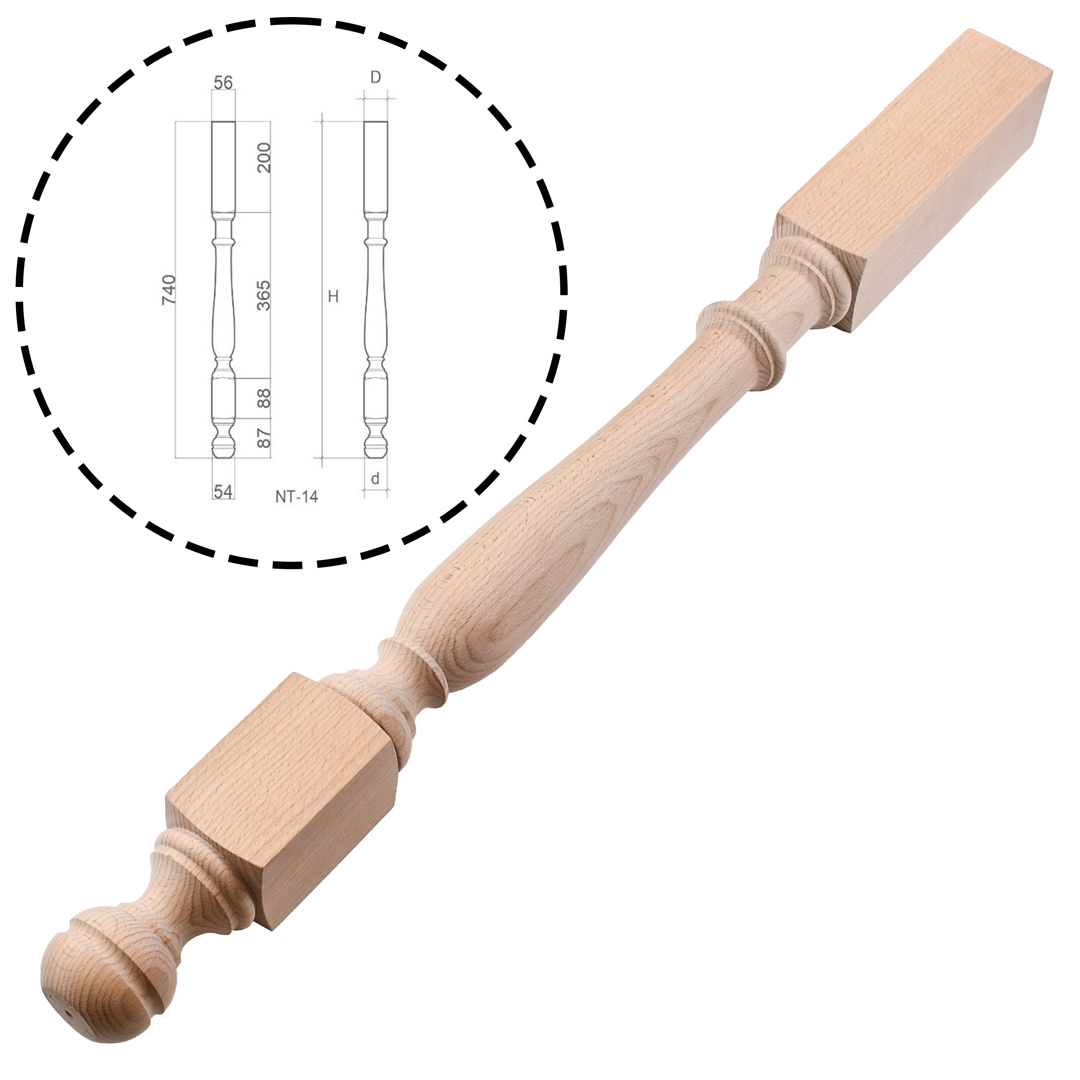 Мебельная опора NT-14, H740, D56, d54 мм, Бук. Это выполненная в традиционном дизайне опора для изготовления мебели из массива. Материал опоры – массив бука. Опора имеет гладкую отшлифованную поверхность. Сделано в России.