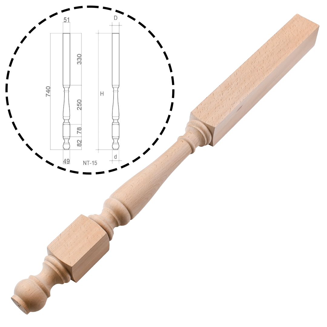 Мебельная опора NT-15, H740, D51, d49 мм, Бук. Это выполненная в традиционном дизайне опора для изготовления мебели из массива. Материал опоры – массив бука. Опора имеет гладкую отшлифованную поверхность. Сделано в России.