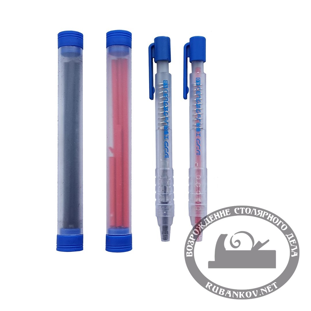 Мелки выдвижные, красный, черный и стержни к ним 4.0 мм. Удобный пластиковый корпус. Пластиковый зацеп для переноски в кармане.