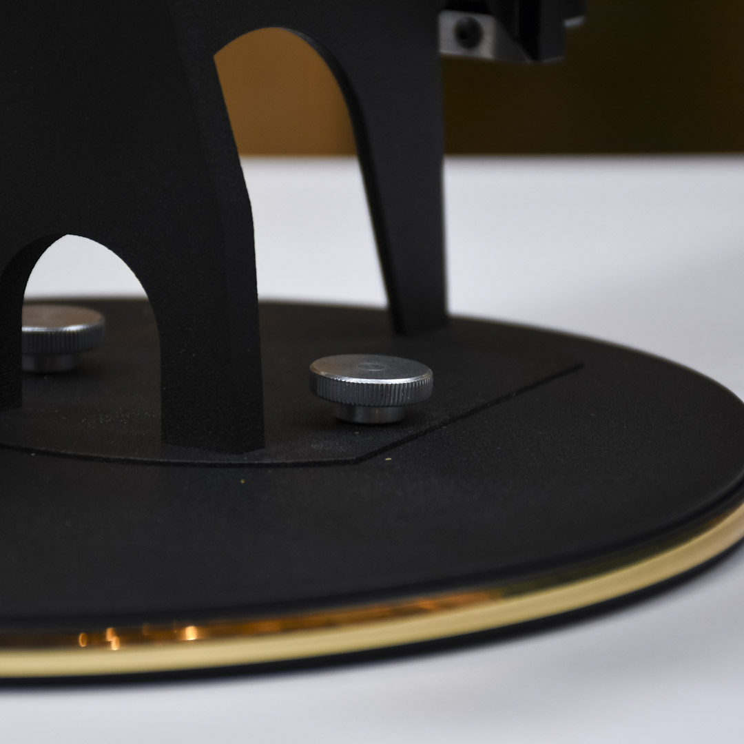 Уникальный вращающийся механизм имеет широкий рычаг, который облегчает вращение и обеспечивает надежную авто-фиксацию рамки для зажимов. Благодаря системе пружин и подшипников рама переворачивается без износа механизма. Корпус системы авторазворота выполнен из прочного авиационного алюминия, с анодированием в черный цвет. Универсальный держатель позволят использовать с точилкой любые абразивные камни как на бланках, так и без бланков. Держатель абразива не имеет металлической подложки, но благодаря специальной геометрии упоров позволяет фиксировать абразивы максимально надежно.