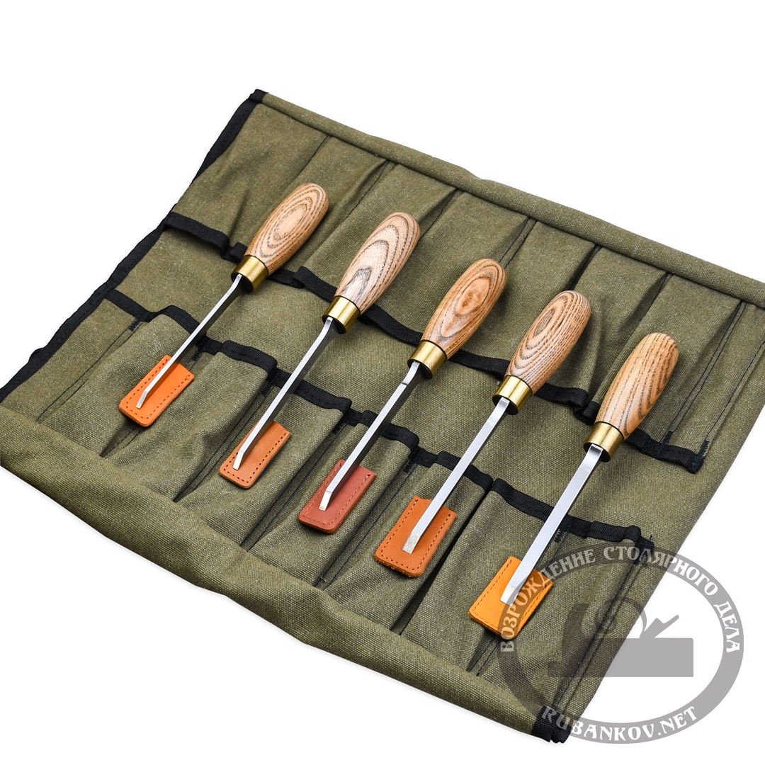 Набор долот ПЕТРОГРАДЪ, серия Двина. Долота спроектированы, ориентируясь на многолетний опыт мастеров-краснодеревщиков. Долото предназначено для выдалбливания отверстий, гнёзд и пазов с применением киянки. Выполнено из стали 9ХС, закалено до 58-60 HRc. Производство фабрика Петроградъ (Россия).